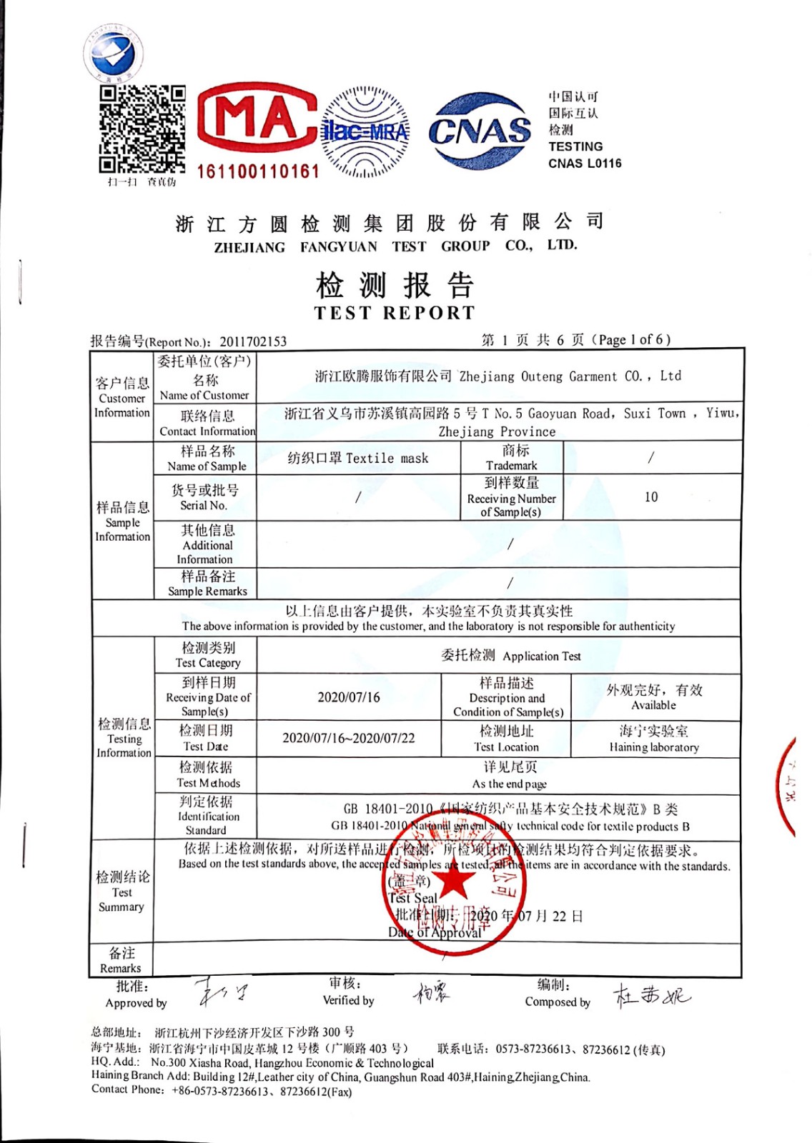 浙江歐騰服飾有限公司位于世界小商品之都-義烏。創立于2015年,是一家專業生產無縫針織運動服飾和內衣的工貿一體企業,擁有自主出口權。 工廠的占地面積約16000平方米 ,引進了大型圣東尼、高騰等多種先進的制衣設備300余臺。月產能可達90萬件。 歐騰服飾每年投入近百萬資金打樣開發新產品,有著一支高素質設計、技術員工隊伍。工廠先后通過了ISO 9001質量管理體系認證、BSCI認證、GRS認證、OEKO-TEX國際生態紡織品認證等多項專利檢測報告。可提供OEM&ODM服務。歐騰服飾以一套完整、科學的質量管理體系,生產的服裝從原材料紗線到成衣,質量完全能夠滿足國內、國際質量要求。獲得了客戶一致好評。工廠先后獲得省科技型企業、國家高新企業、義烏市誠信講信用單位、規上企業、信用AAA級等榮譽。